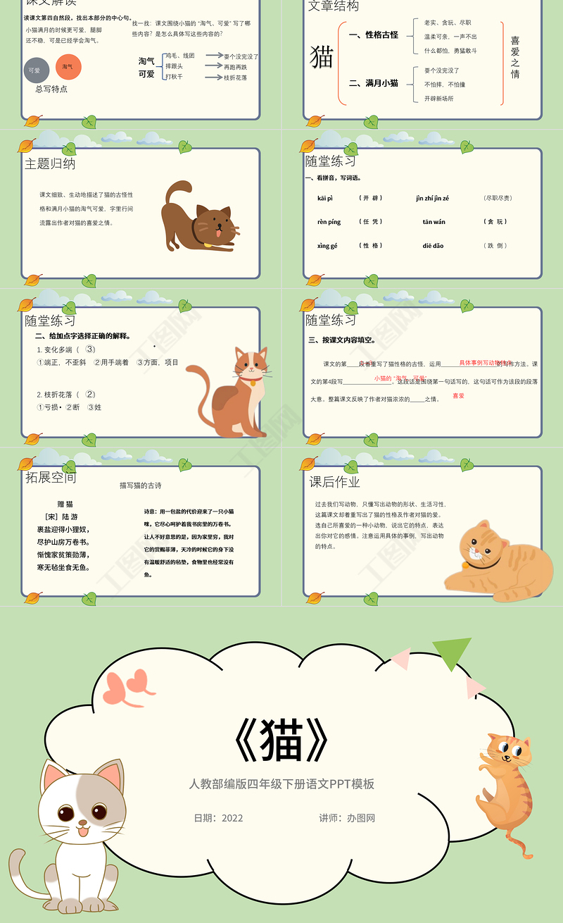 《貓》人教部編版四年級(jí)下冊(cè)語文PPT模板日期:2022講師:辦圖網(wǎng)