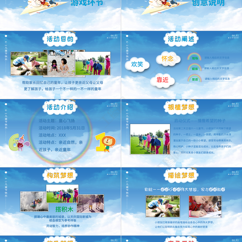 活動介紹活動主題:童心飛揚(yáng)活動時間: 2018年5月31日活動地點(diǎn):XXX活動特點(diǎn):親近自然,親近孩子,親近童年