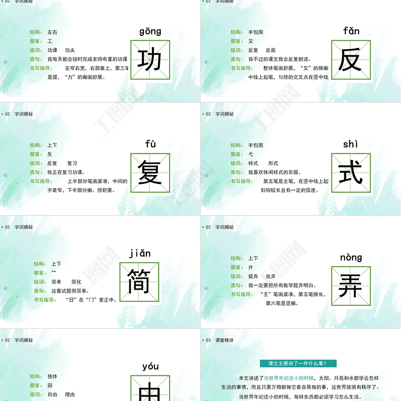 年紀(jì):年齡、歲數(shù)。 粗糙:不精細(xì),不光滑?!?敏感:疾速,敏捷。 秩序:有條理,不混亂的情況。 成功:獲得預(yù)期的結(jié)果。02 字詞揭秘