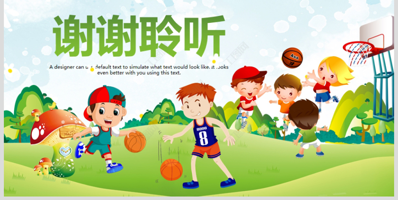 原創(chuàng)時尚水彩兒童少兒籃球運動少兒籃球培訓PPT模板-版權可商用