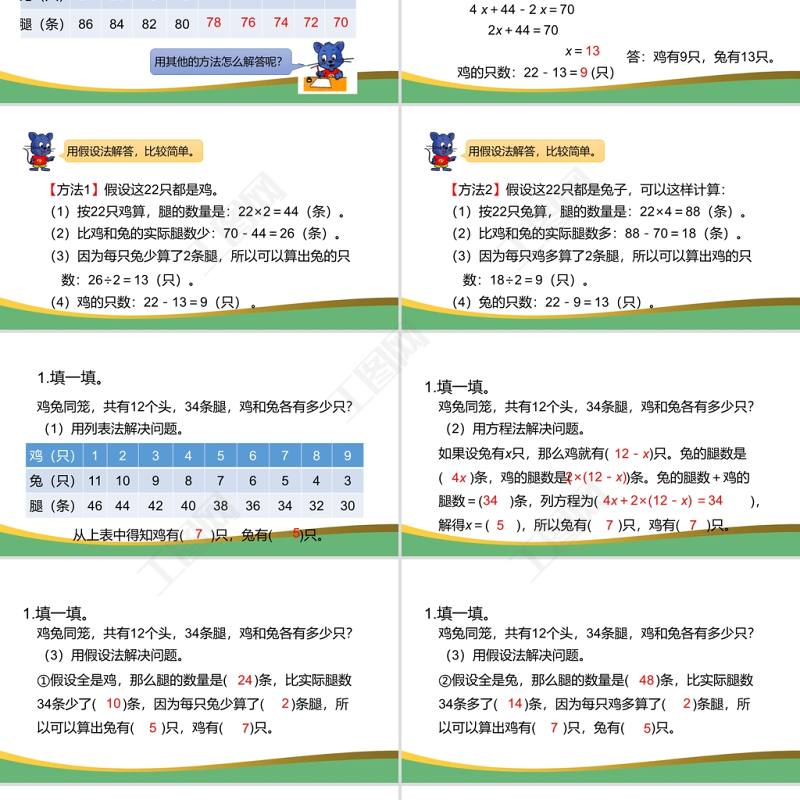 工圖網(wǎng)提供2021雞兔同籠數(shù)學課件PPT冀教版五年級上冊數(shù)學課件模板供會員免費下載。更多精彩黨課PPT素材,盡在工圖網(wǎng)。