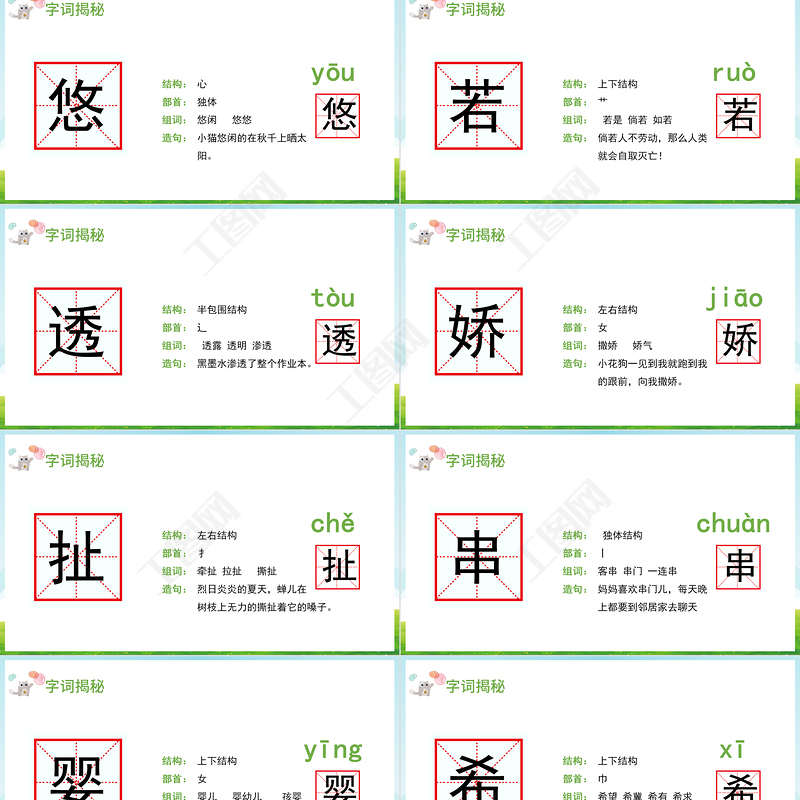 結(jié)構(gòu): 部首: 組詞: 造句: 半包圍結(jié)構(gòu) 辶 透露 透明 滲透 黑墨水滲透了整個(gè)作業(yè)本。tòu字詞揭秘