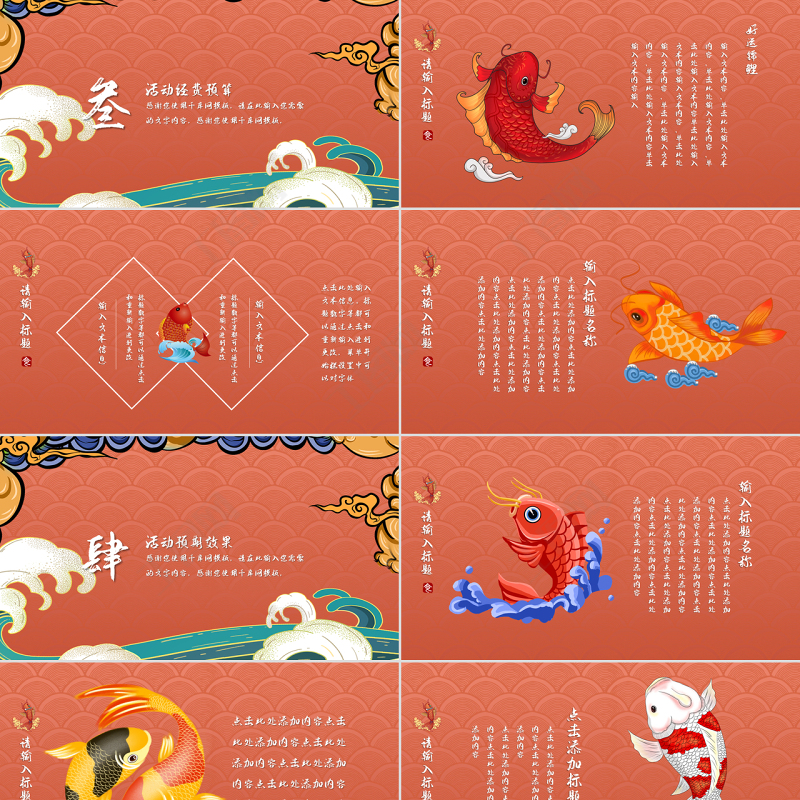 橘色,中國風(fēng),國潮,手繪,錦鯉,中式,傳統(tǒng),插畫風(fēng),活動(dòng)策劃,活動(dòng)計(jì)劃,商業(yè)計(jì)劃,PPT,模板 Array