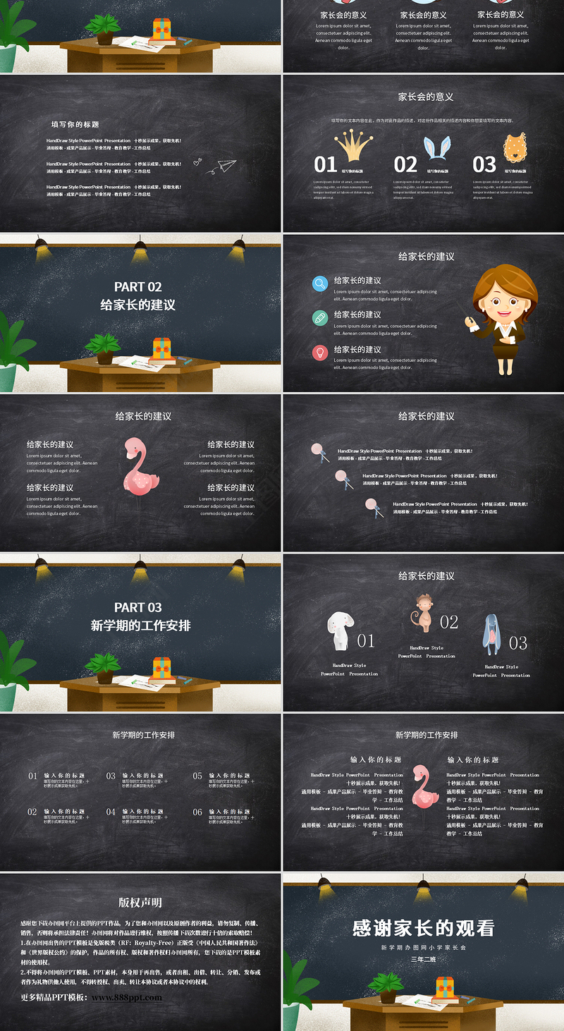 <p>新 學(xué) 期 辦 圖 網(wǎng) 小 學(xué) 家 長 會可愛卡通家長會三年二班</p><br><p>首先,各位家長能在百忙之中抽出時間來參加這次家長會表示深深的感謝!召開這次家長會的目的是為了加強老師與家長之間的聯(lián)系,互相交流一下學(xué)生在校及在家的情況,以使我們能夠及時調(diào)整工作,提高教育教學(xué)質(zhì)量,同時促使家長也能夠積極于到學(xué)生的管理鐘來,總之一句話,就是“一切為了孩子,這是我們教育的一個根本出發(fā)點?!蔽蚁M蚕嘈牛瑥倪@個出發(fā)點出噶,我們家長一定會達(dá)到預(yù)期效果,取得圓滿成功,下面我把本班的有關(guān)情況向家長們做個匯報。前 言</p><br><p>目 錄</p><br><p>家長會的意義PART 01</p><br><p>家長會的意義家長會的意義Lorem ipsum dolor sit amet, consectetuer adipiscing elit. Aenean commodo ligula eget dolor. 家長會的意義Lorem ipsum dolor sit amet, consectetuer adipiscing elit. Aenean commodo ligula eget dolor. 家長會的意義Lorem ipsum dolor sit amet, consectetuer adipiscing elit. Aenean commodo ligula eget dolor. </p><br><p>填寫你的標(biāo)題HandDraw Style PowerPoint Presentation 十秒展示成果,獲取先機!通用模板 - 成果產(chǎn)品展示 - 畢業(yè)答辯 - 教育教學(xué) - 工作總結(jié)HandDraw Style PowerPoint Presentation 十秒展示成果,獲取先機!通用模板 - 成果產(chǎn)品展示 - 畢業(yè)答辯 - 教育教學(xué) - 工作總結(jié)HandDraw Style PowerPoint Presentation 十秒展示成果,獲取先機!通用模板 - 成果產(chǎn)品展示 - 畢業(yè)答辯 - 教育教學(xué) - 工作總結(jié)</p><br><p>Lorem ipsum dolor sit amet, consetetur sadipscing elitr, sed diam nonumy eirmod tempor invidunt ut labore et dolore magna aliquyam erat.填寫你的標(biāo)題Lorem ipsum dolor sit amet, consetetur sadipscing elitr, sed diam nonumy eirmod tempor invidunt ut labore et dolore magna aliquyam erat.填寫你的標(biāo)題Lorem ipsum dolor sit amet, consetetur sadipscing elitr, sed diam nonumy eirmod tempor invidunt ut labore et dolore magna aliquyam erat.填寫你的標(biāo)題010203填寫你的文本內(nèi)容在此,作為對此作品的描述,對這份作品相關(guān)的描述內(nèi)容和你想要填寫的文本內(nèi)容。家長會的意義</p><br><p>給家長的建議PART 02</p><br><p>給家長的建議給家長的建議Lorem ipsum dolor sit amet, consectetuer adipiscing elit. Aenean commodo ligula eget dolor. Lorem ipsum dolor sit amet, consectetuer adipiscing elit. Aenean commodo ligula eget dolor. 給家長的建議Lorem ipsum dolor sit amet, consectetuer adipiscing elit. Aenean commodo ligula eget dolor. 給家長的建議</p><br><p>給家長的建議Lorem ipsum dolor sit amet, consectetuer adipiscing elit. Aenean commodo ligula eget dolor. 給家長的建議Lorem ipsum dolor sit amet, consectetuer adipiscing elit. Aenean commodo ligula eget dolor. 給家長的建議Lorem ipsum dolor sit amet, consectetuer adipiscing elit. Aenean commodo ligula eget dolor. 給家長的建議Lorem ipsum dolor sit amet, consectetuer adipiscing elit. Aenean commodo ligula eget dolor. 給家長的建議</p><br><p>HandDraw Style PowerPoint Presentation 十秒展示成果,獲取先機!通用模板 - 成果產(chǎn)品展示 - 畢業(yè)答辯 - 教育教學(xué) - 工作總結(jié)HandDraw Style PowerPoint Presentation 十秒展示成果,獲取先機!通用模板 - 成果產(chǎn)品展示 - 畢業(yè)答辯 - 教育教學(xué) - 工作總結(jié)HandDraw Style PowerPoint Presentation 十秒展示成果,獲取先機!通用模板 - 成果產(chǎn)品展示 - 畢業(yè)答辯 - 教育教學(xué) - 工作總結(jié)給家長的建議</p><br><p>新學(xué)期的工作安排PART 03</p><br><p>HandDraw Style PowerPoint PresentationHandDraw Style PowerPoint PresentationHandDraw Style PowerPoint Presentation給家長的建議</p><br><p>01輸入你的標(biāo)題填寫你的文本內(nèi)容在這里,十秒展示成果獲取先機。02輸入你的標(biāo)題填寫你的文本內(nèi)容在這里,十秒展示成果獲取先機。03輸入你的標(biāo)題填寫你的文本內(nèi)容在這里,十秒展示成果獲取先機。05輸入你的標(biāo)題填寫你的文本內(nèi)容在這里,十秒展示成果獲取先機。04輸入你的標(biāo)題填寫你的文本內(nèi)容在這里,十秒展示成果獲取先機。06輸入你的標(biāo)題填寫你的文本內(nèi)容在這里,十秒展示成果獲取先機。新學(xué)期的工作安排</p><br><p>新學(xué)期的工作安排</p><br><p>版權(quán)聲明感謝您下載辦圖網(wǎng)平臺上提供的PPT作品,為了您和辦圖網(wǎng)以及原創(chuàng)作者的利益,請勿復(fù)制、傳播、銷售,否則將承擔(dān)法律責(zé)任!辦圖網(wǎng)將對作品進(jìn)行維權(quán),按照傳播下載次數(shù)進(jìn)行十倍的索取賠償!1.在辦圖網(wǎng)出售的PPT模板是免版稅類(RF:Royalty-Free)正版受《中國人民共和國著作法》和《世界版權(quán)公約》的保護(hù),作品的所有權(quán)、版權(quán)和著作權(quán)歸辦圖網(wǎng)所有,您下載的是PPT模板素材的使用權(quán)。2.不得將辦圖網(wǎng)的PPT模板、PPT素材,本身用于再出售,或者出租、出借、轉(zhuǎn)讓、分銷、發(fā)布或者作為禮物供他人使用,不得轉(zhuǎn)授權(quán)、出賣、轉(zhuǎn)讓本協(xié)議或者本協(xié)議中的權(quán)利。更多精品PPT模板:www.888ppt.com</p><br><p>新 學(xué) 期 辦 圖 網(wǎng) 小 學(xué) 家 長 會感謝家長的觀看三年二班</p><br>