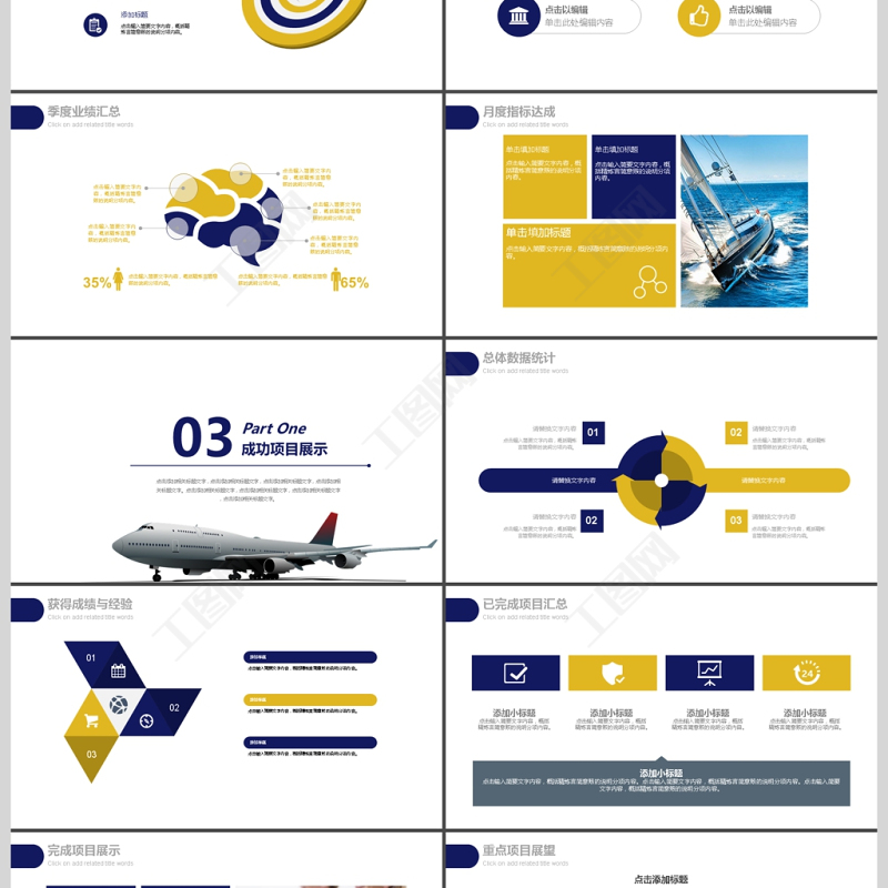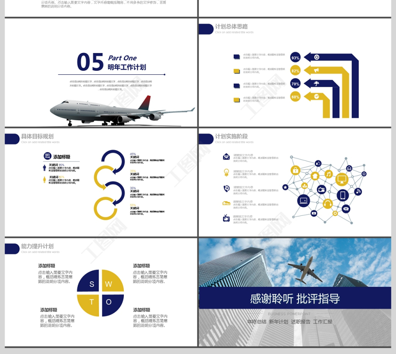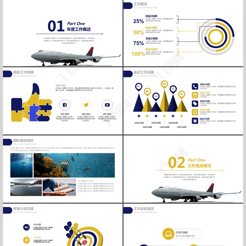 2017年機場航空公司通用年終匯報PPT模板 Array