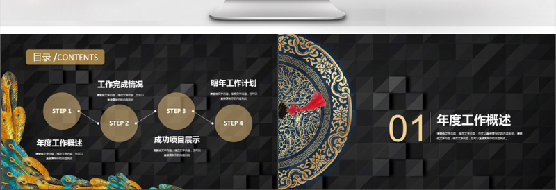 2019高端炫酷黑金中國風(fēng)商務(wù)計劃書PPT模板 Array