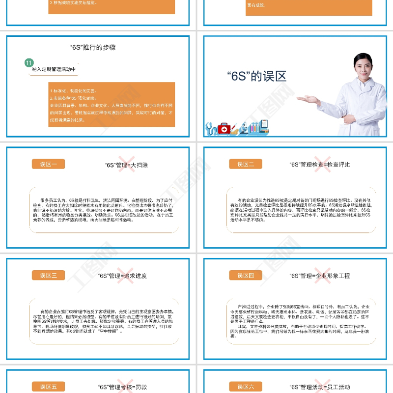 誤區(qū)一“6S”管理=大掃除很多員工認為,6S就是打掃衛(wèi)生,清潔周圍環(huán)境。在整理階段,為了應付檢查,有的員工在大掃除時把原本有用的比武題庫、化驗員讀本等書也給扔了,他們說不扔沒地方放。其實,整理整頓不是讓你扔東西,而是讓你清除不必需的,然后將有用的物品分類擺放、明確數(shù)量。6S是持續(xù)改進的活動,在于員工素養(yǎng)的養(yǎng)成,營造整潔的現(xiàn)場,而大掃除是臨時性活動。