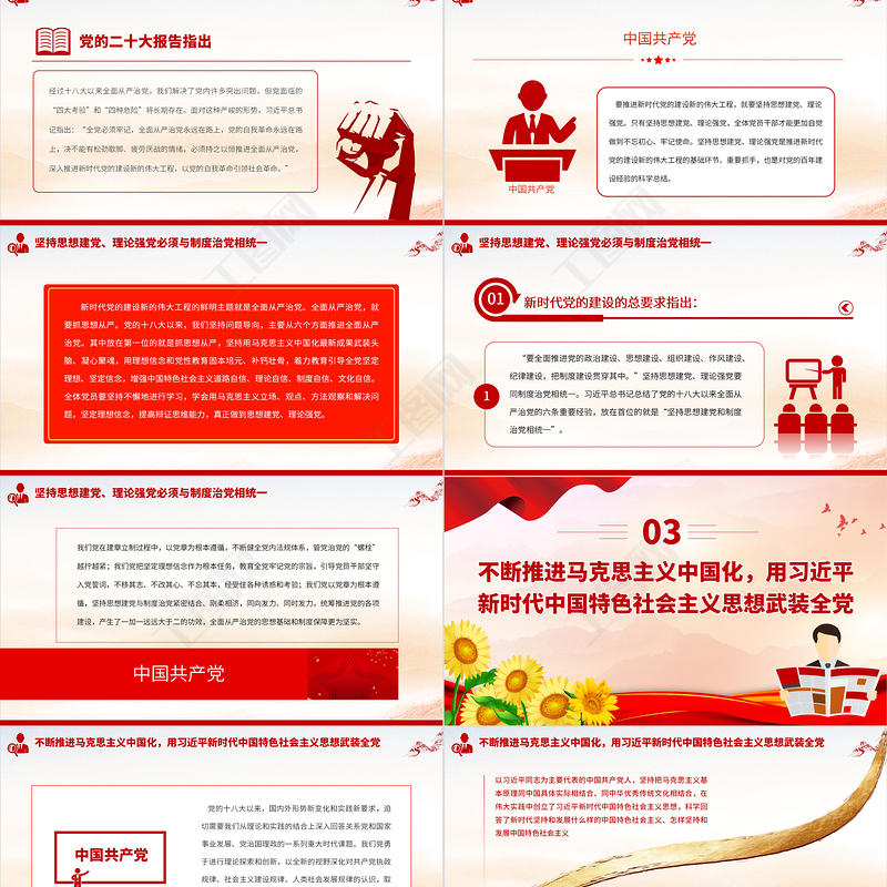工圖網(wǎng)提供2023堅持思想建黨、理論強(qiáng)黨PPT大氣精美風(fēng)黨員干部學(xué)習(xí)教育專題黨課課件供會員免費(fèi)下載。更多精彩黨課PPT素材,盡在工圖網(wǎng)。