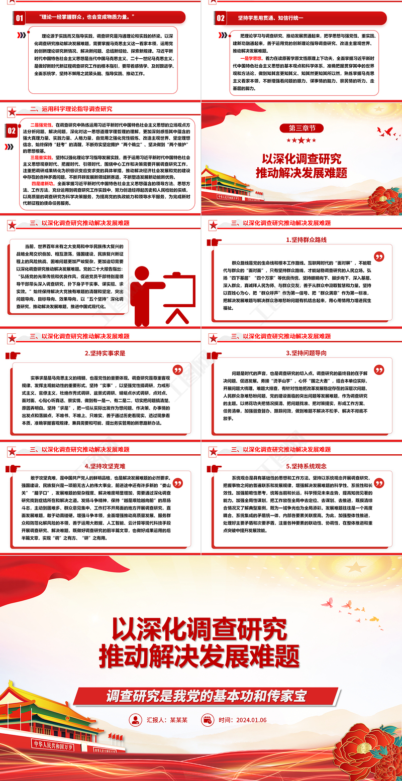 以深化調查研究推動解決發(fā)展難題ppt紅色簡約大興調查研究專題微黨課 Array