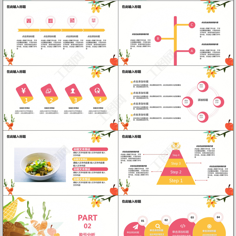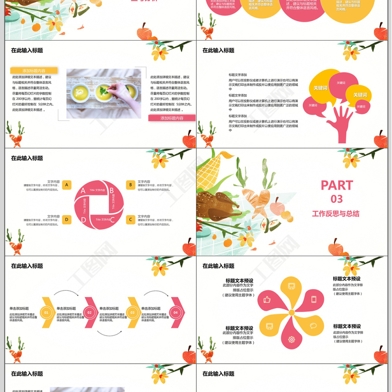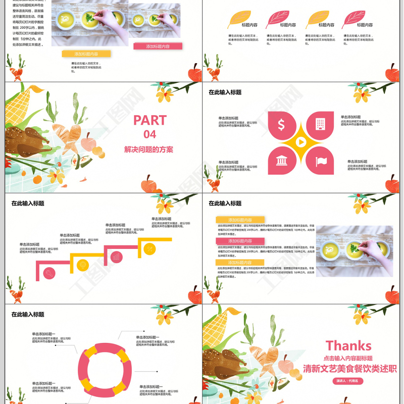工圖網(wǎng)提供清新文藝風(fēng)美食類(lèi)述職PPT模板供會(huì)員免費(fèi)下載。更多精彩黨課PPT素材,盡在工圖網(wǎng)。