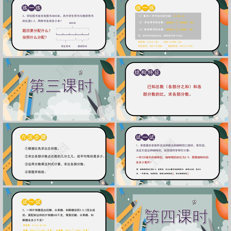 ,人教版六年級(jí)數(shù)學(xué)《比的應(yīng)用》PPT模板 Array