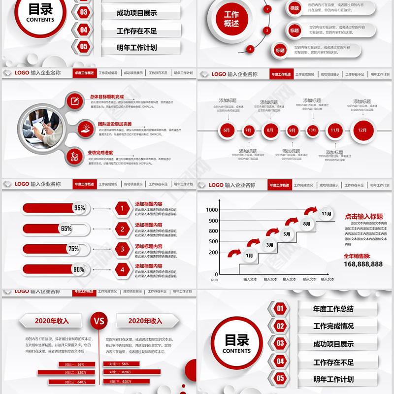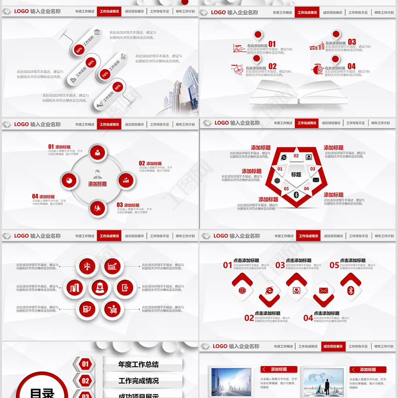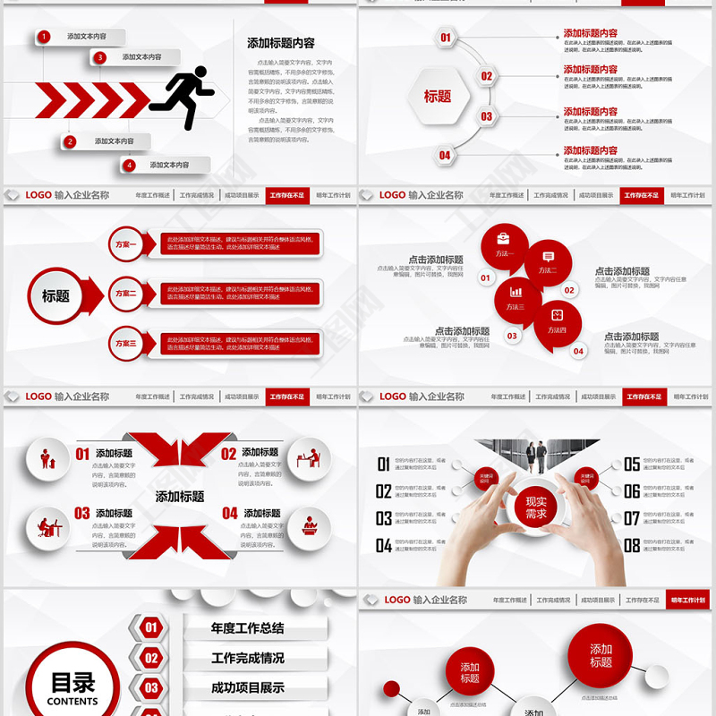 紅色,微粒體,年終總結(jié),新年計(jì)劃,工作總結(jié)ppt模板幻燈片 Array