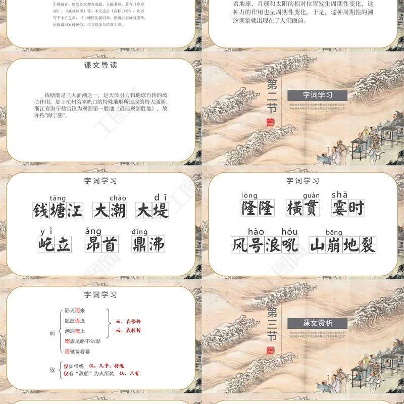 2022觀潮PPT中國風(fēng)第1課小學(xué)四年級語文上冊部編人教版教學(xué)課件