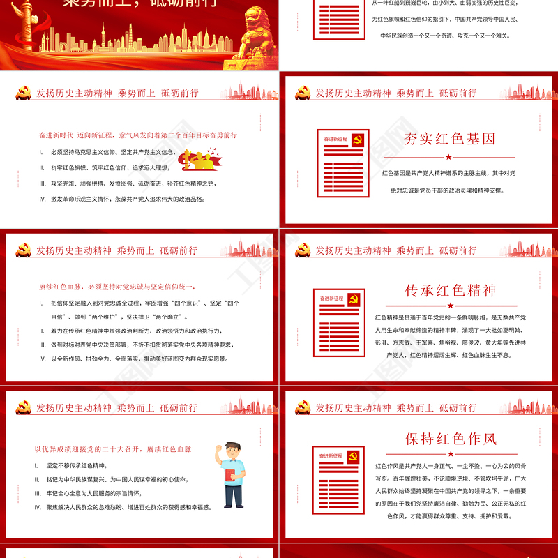 傳承紅色精神紅色精神是貫通于百年黨史的一條鮮明脈絡(luò),是無數(shù)共產(chǎn)黨人用生命和奉獻締造的精神豐碑,涌現(xiàn)了一大批如夏明翰、彭湃、方志敏、王軍喜、焦裕祿、廖俊波、黃大年等先進共產(chǎn)黨人,紅色精神熠熠生輝、紅色血脈生生不息。