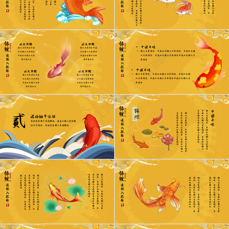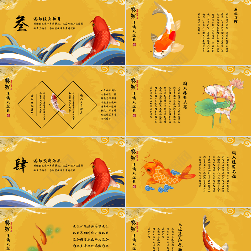 金色,國(guó)潮,中式,中國(guó)風(fēng),好運(yùn),錦鯉,鯉魚,手繪,插畫,活動(dòng)策劃,商業(yè)策劃,商業(yè)計(jì)劃,活動(dòng)宣傳,PPT,模板 Array