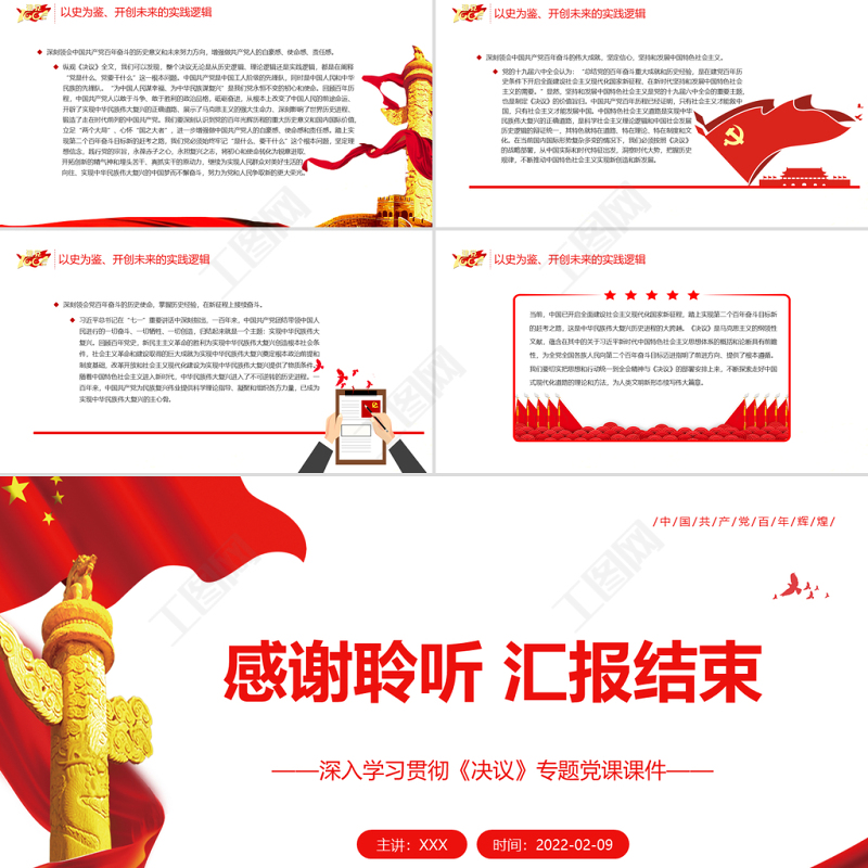 /中/國/共/產(chǎn)/黨/百/年/輝/煌/感謝聆聽 匯報(bào)結(jié)束——深入學(xué)習(xí)貫徹《決議》專題黨課課件——