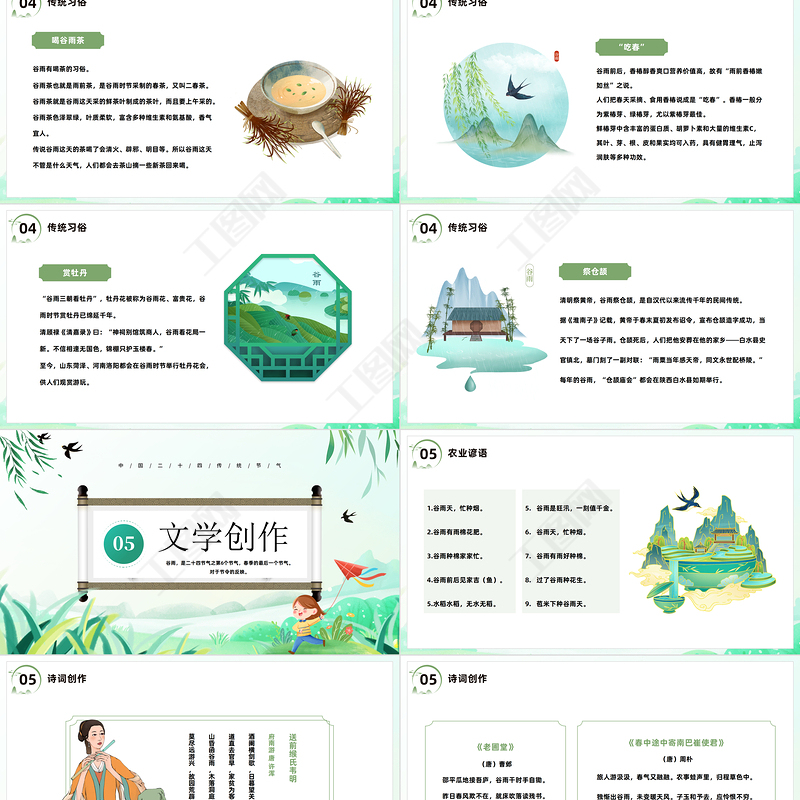 工圖網(wǎng)提供2023谷雨節(jié)氣介紹PPT插畫中國風(fēng)二十四節(jié)氣之谷雨主題班會課件模板下載供會員免費(fèi)下載。更多精彩黨課PPT素材,盡在工圖網(wǎng)。