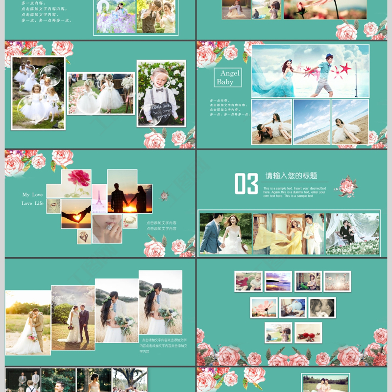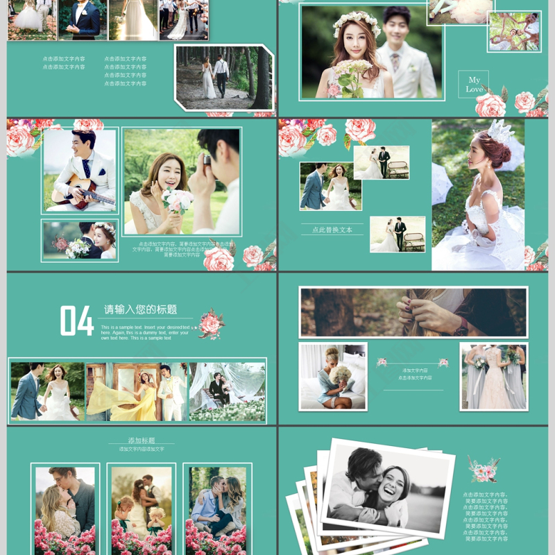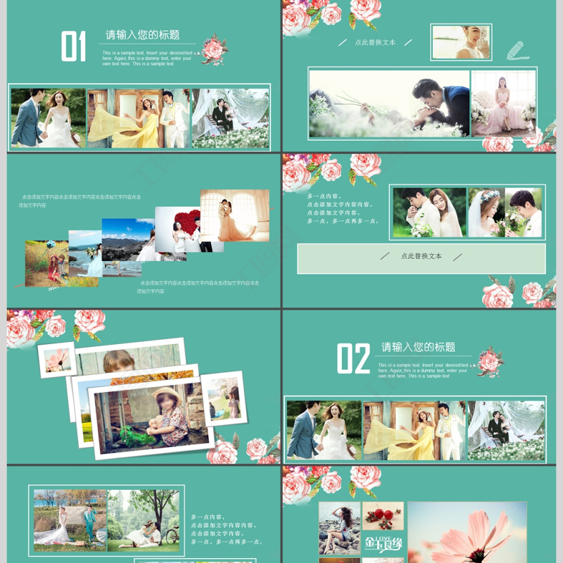 浪漫花朵手繪婚禮相冊婚慶策劃PPT模板 Array