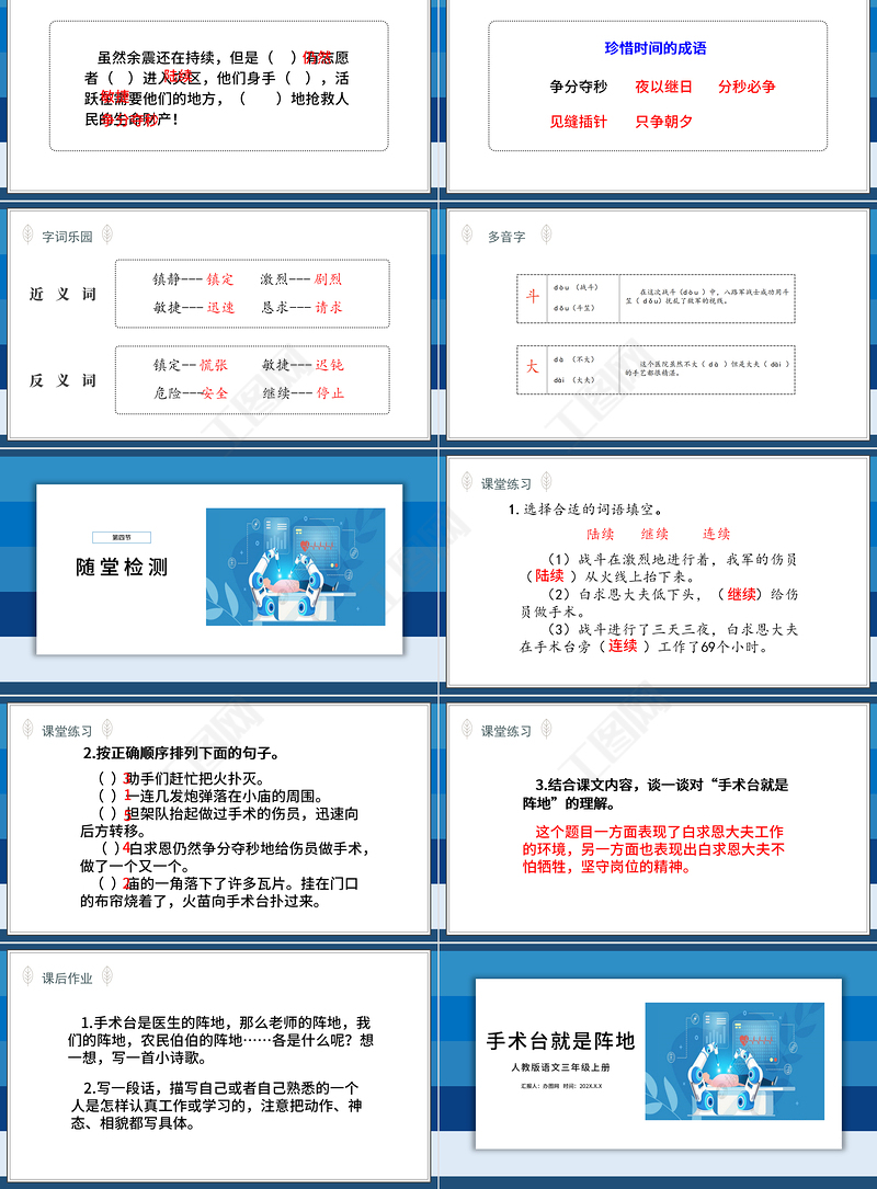 手術(shù)臺(tái)就是陣地人教版語(yǔ)文三年級(jí)上冊(cè)匯報(bào)人:辦圖網(wǎng) 時(shí)間:202X.X.X