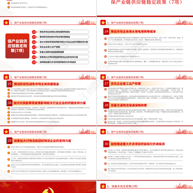6方面33項(xiàng)穩(wěn)經(jīng)濟(jì)一攬子政策措施PPT紅色大氣風(fēng)黨員干部學(xué)習(xí)教育專題黨課課件模板 Array