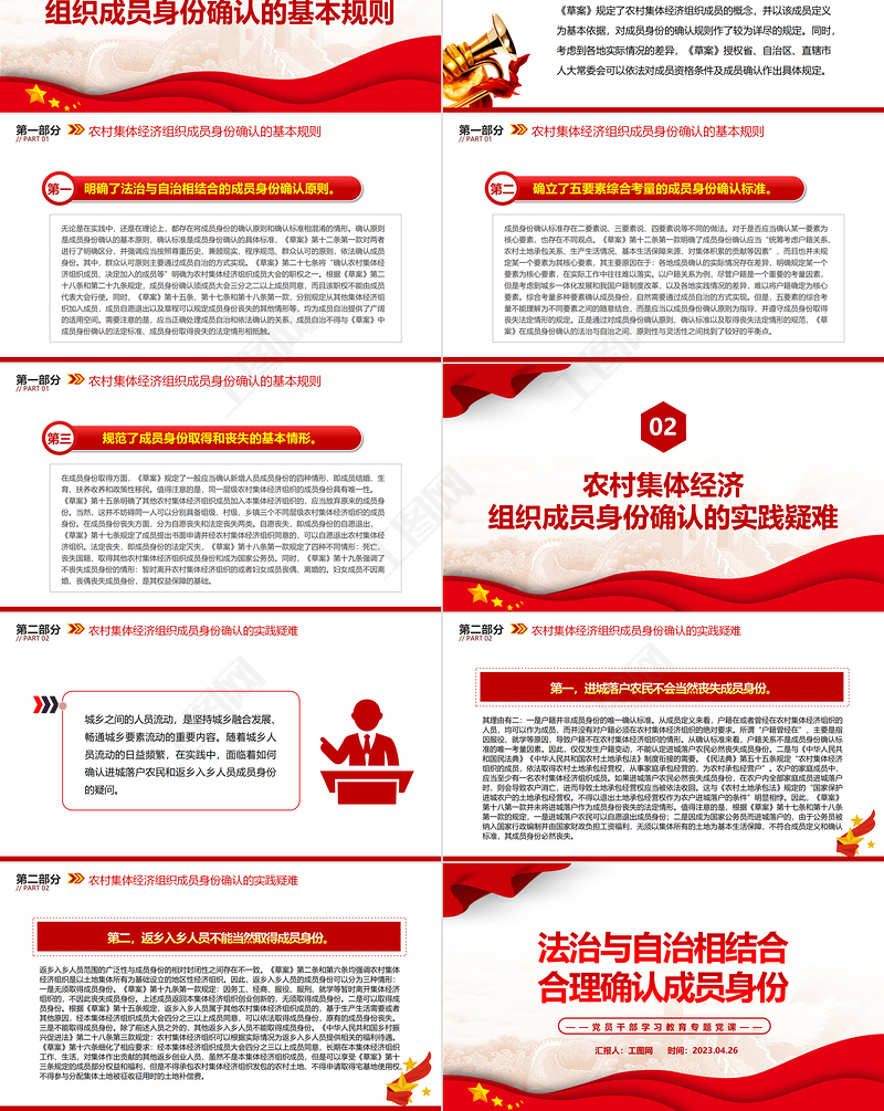 2023法治與自治相結合合理確認成員身份PPT大氣精美風黨員干部學習教育專題黨課課件 Array