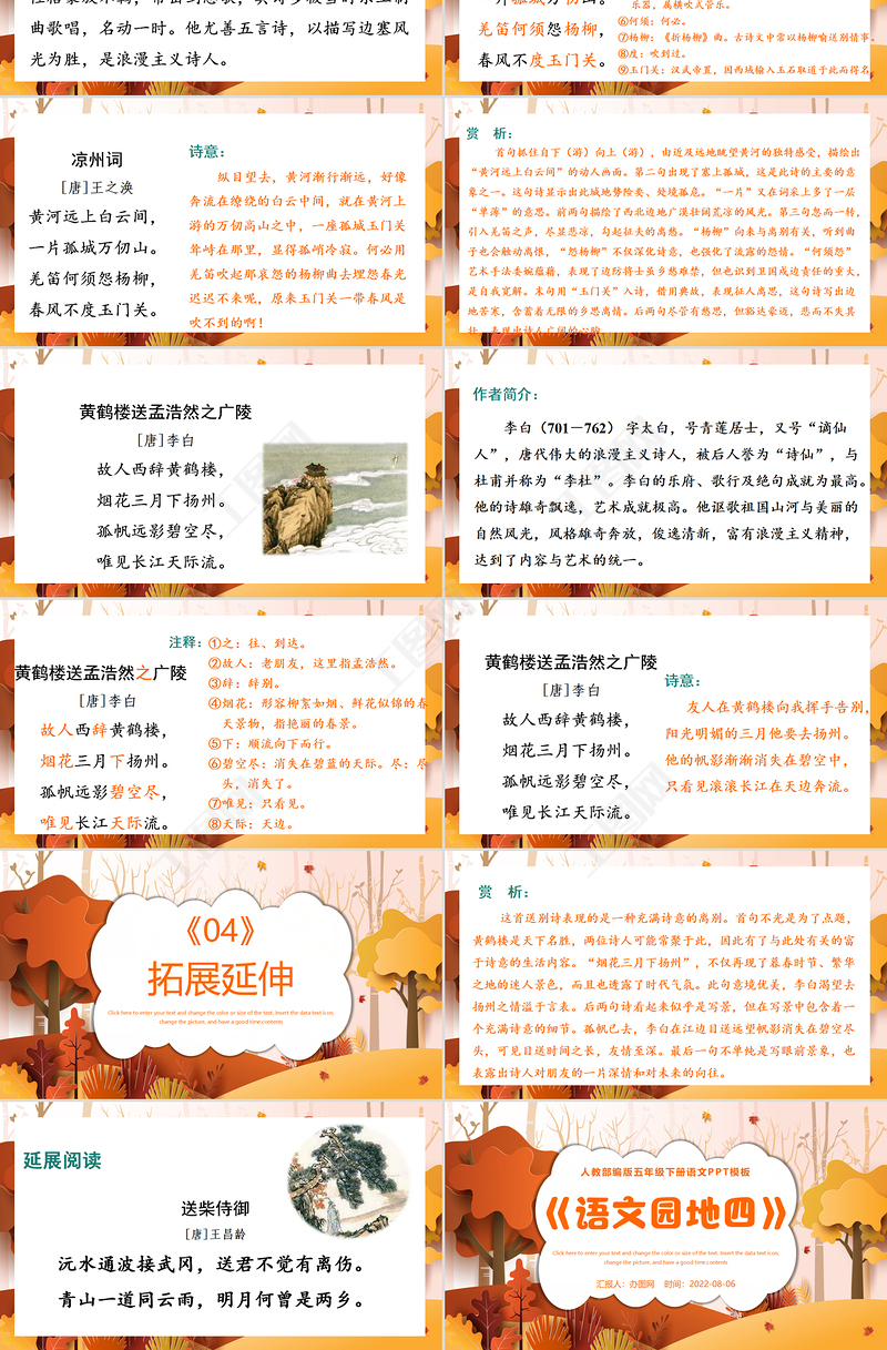 Click here to enter your text and change the color or size of the text. Insert the data text icon, change the picture, and have a good time.contents人教部編版五年級下冊語文PPT模板《語文園地四》匯報人:辦圖網(wǎng) 時間:2022-08-06