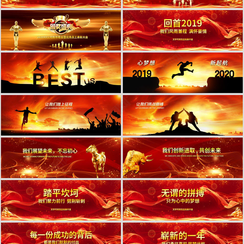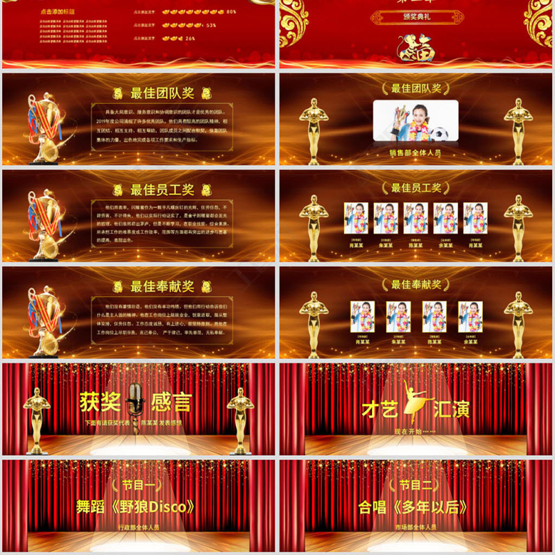 原創(chuàng)2020鼠年震撼寬屏年會頒獎ppt模板