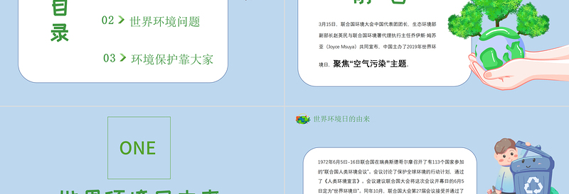 2021世界地球日藍(lán)色簡(jiǎn)約卡通環(huán)保地球低碳綠色生活PPT Array