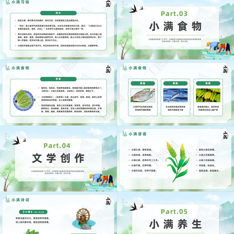 文學創(chuàng)作Part.04小滿是夏季的第二個節(jié)氣。小滿其含義是夏熟作物的籽粒開始灌漿飽滿,但還未成熟,只是小滿,還未大滿。