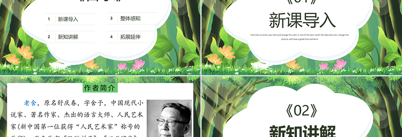 《01》新課導入Click here to enter your text and change the color or size of the text. Insert the data text icon, change the picture, and have a good time.contents