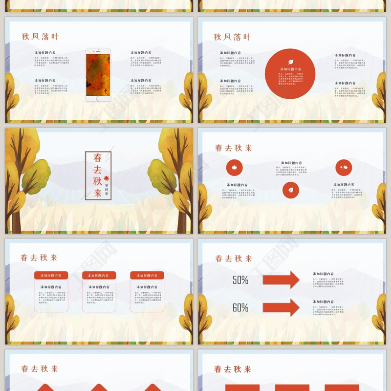 紅色原創(chuàng)插畫(huà)秋天你好PPT模板 Array