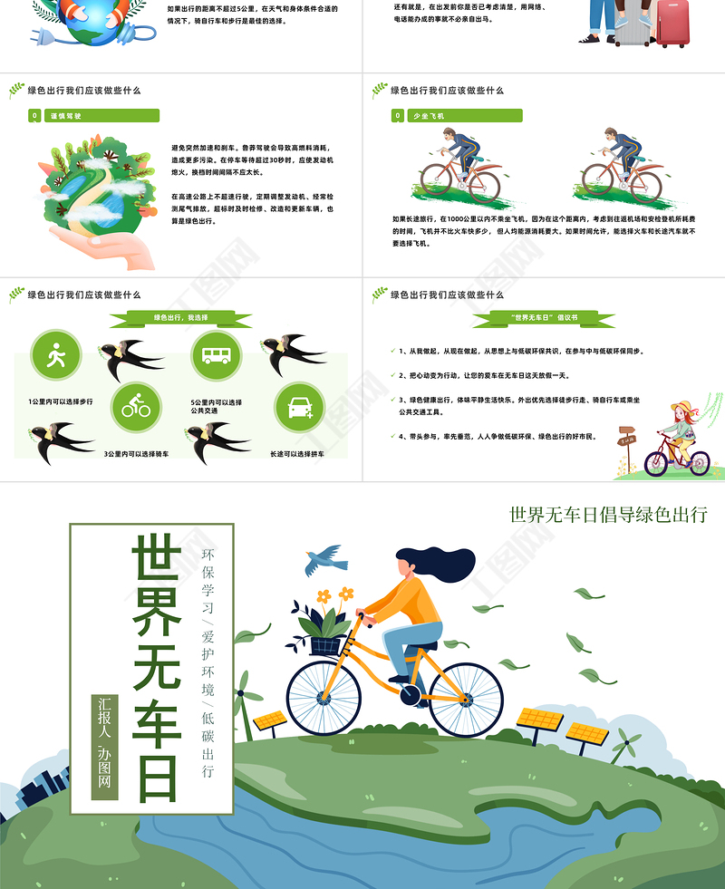 2022世界無車日PPT卡通插畫風世界無車日倡導(dǎo)綠色出行課件模板