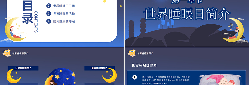 1世界睡眠日簡介2世界睡眠日日期3世界睡眠日活動4如何健康的睡眠目錄CONTENTS
