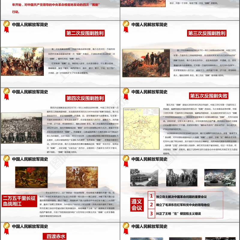中國人民解放軍簡史二萬五千里長征飛奪瀘定橋飛奪瀘定橋,是中國工農(nóng)紅軍長征中的一場戰(zhàn)役,發(fā)生于1935年5月29日。中央紅軍部隊在四川省中西部強渡大渡河成功,沿大渡河左岸北上,主力由安順場沿大渡河右岸北上,紅四團(tuán)官兵在天下大雨的情況下,在崎嶇陡峭的山路上跑步前進(jìn),一晝夜奔襲竟達(dá)120公里,終于在5月29日凌晨6時許按時到達(dá)瀘定橋西岸。第2連連長和22名突擊隊員沿著槍林彈雨和火墻密布的鐵索踩著鐵鏈奪下橋頭,并與左岸部隊合圍占領(lǐng)了瀘定橋。