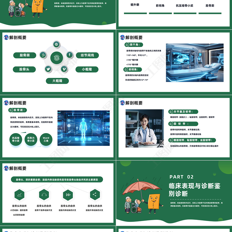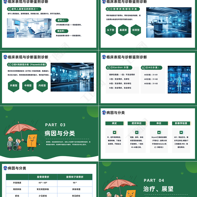 2023股骨頸骨折課件PPT簡約醫(yī)療風(fēng)股骨頸骨折介紹課件模板下載 Array