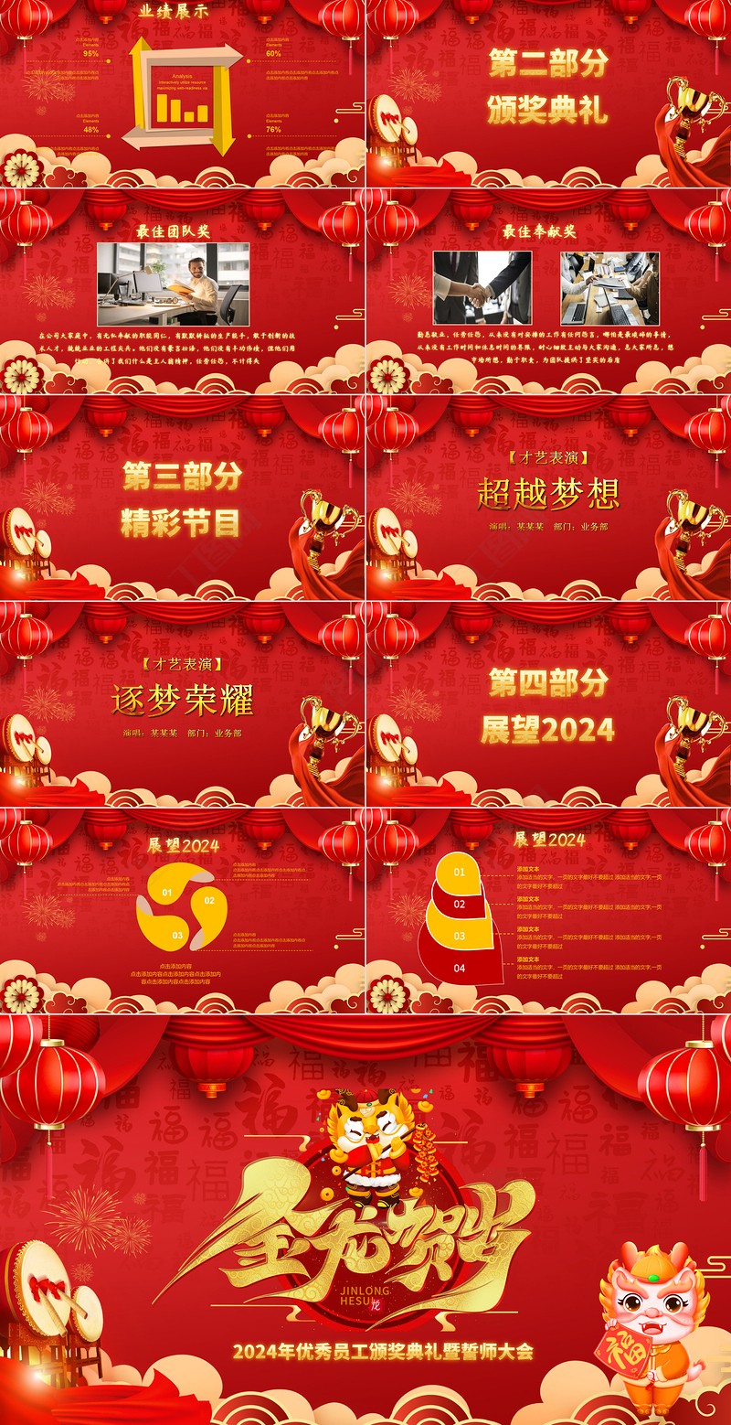 龍年優(yōu)秀員工頒獎典禮暨誓師大會PPT傳統(tǒng)中國風通用模板下載 Array