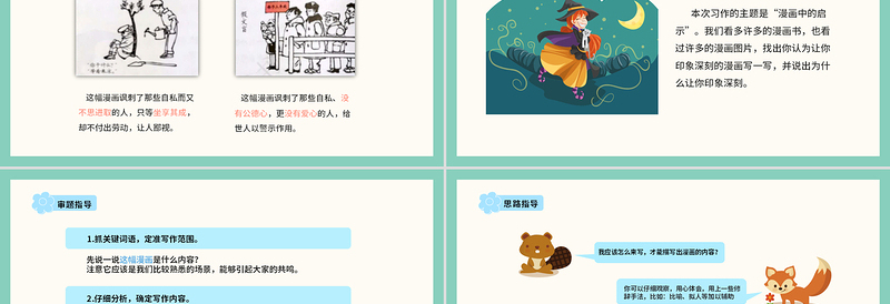 本次習作的主題是“漫畫中的啟示”。我們看多許多的漫畫書,也看過許多的漫畫圖片,找出你認為讓你印象深刻的漫畫寫一寫,并說出為什么讓你印象深刻。