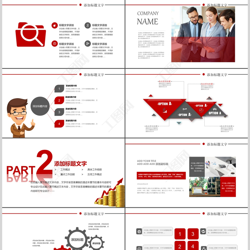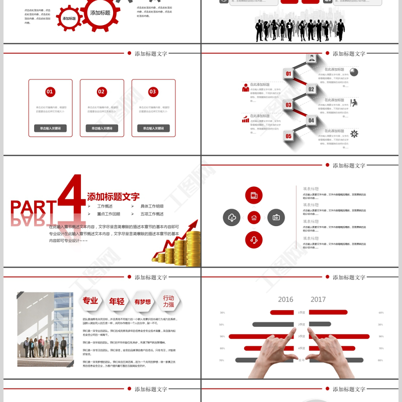 2018紅色工作總結(jié)工作匯報PPT模板包含