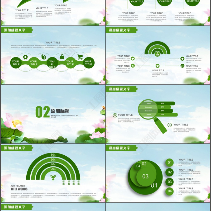 綠色清新荷花通用說(shuō)課公開(kāi)課PPT模板 Array