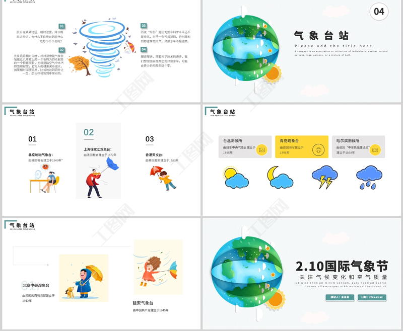 到了2000年時,就已經(jīng)有65個國家的130個電視臺參加國際氣象節(jié)了。01我國最早的氣象臺是1872年建成的上海徐家匯觀象臺,和即時系統(tǒng)預(yù)報(bào)。02節(jié)日由來ADD RELATED TITLE WORDS