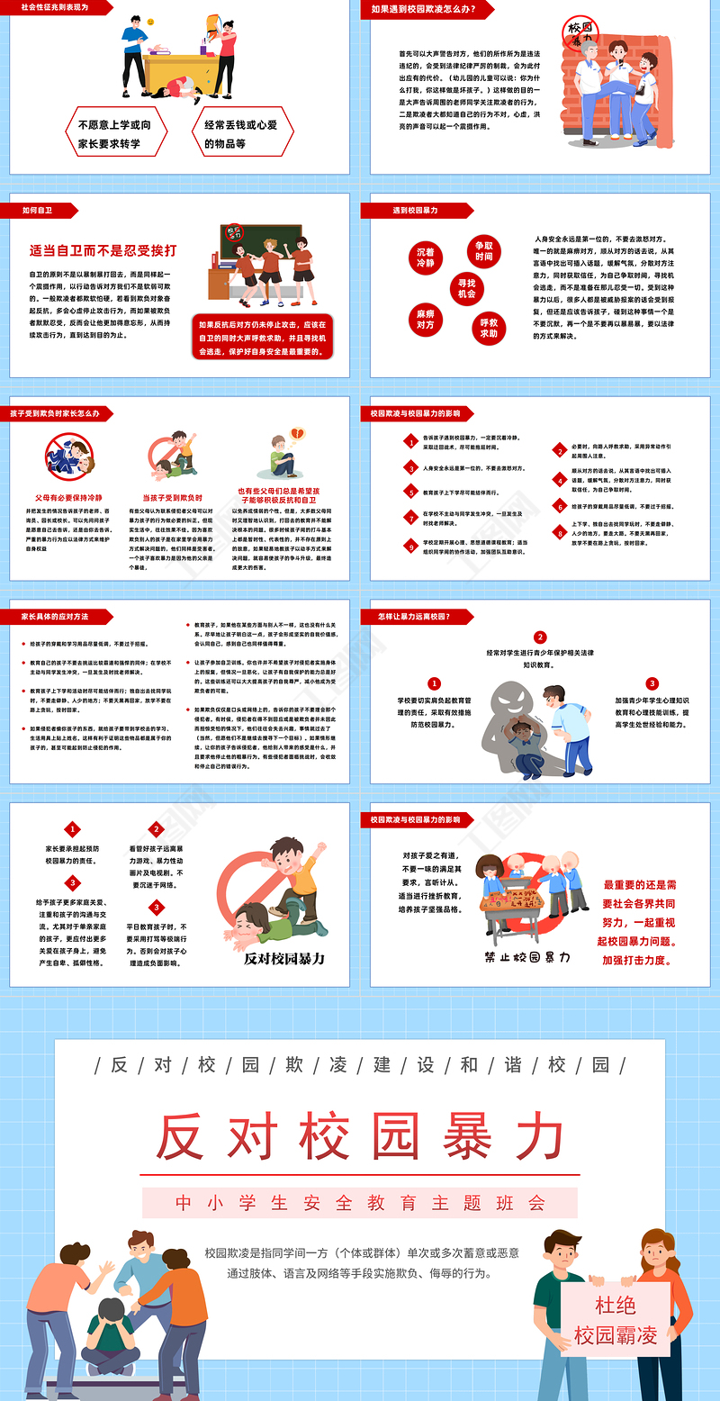 2023反對校園暴力PPT校園卡通風中小學生反對校園暴力主題班會課件模板下載 Array