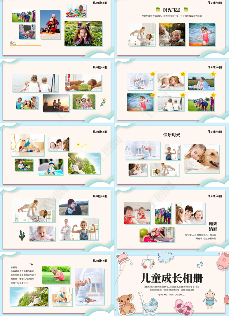 2022兒童成長(zhǎng)相冊(cè)PPT卡通風(fēng)格兒童成長(zhǎng)相冊(cè)模板下載 Array