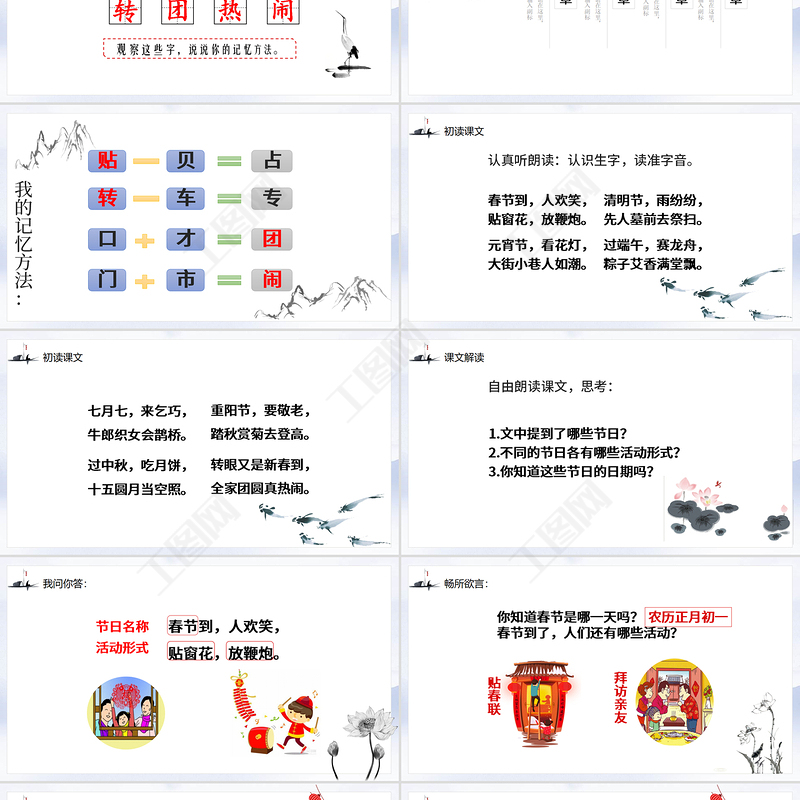 工圖網(wǎng)提供二年級(jí)語(yǔ)文下冊(cè)課件識(shí)字二傳統(tǒng)節(jié)日PPT模板供會(huì)員免費(fèi)下載。更多精彩黨課PPT素材,盡在工圖網(wǎng)。
