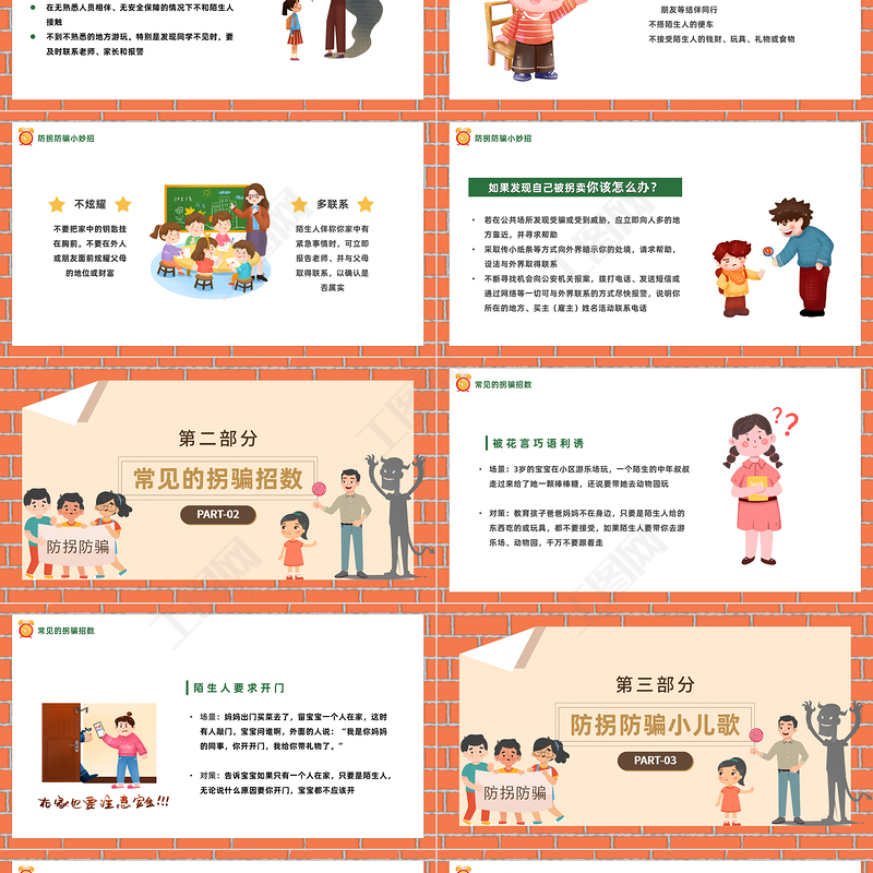 2023兒童防拐騙知識講座PPT卡通插畫風(fēng)兒童防拐騙主題班會課件模板 Array