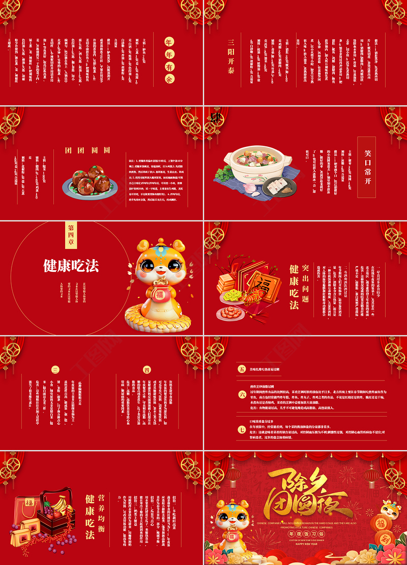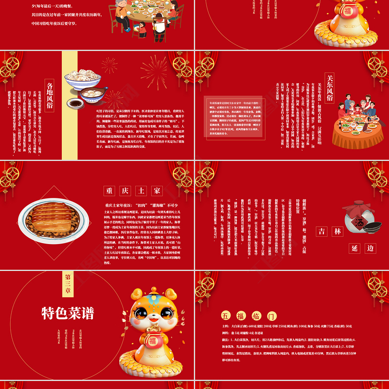 除夕團(tuán)圓夜PPT精美紅色中國(guó)傳統(tǒng)除夕夜年夜飯習(xí)俗模板 Array