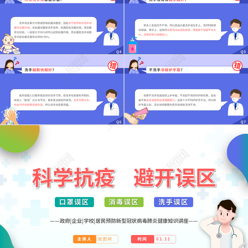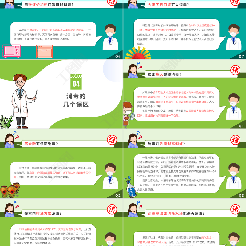 工圖網(wǎng)提供原創(chuàng)預(yù)防新型冠狀病毒的誤區(qū)洗手消毒口罩誤區(qū)PPT供會員免費下載。更多精彩黨課PPT素材,盡在工圖網(wǎng)。