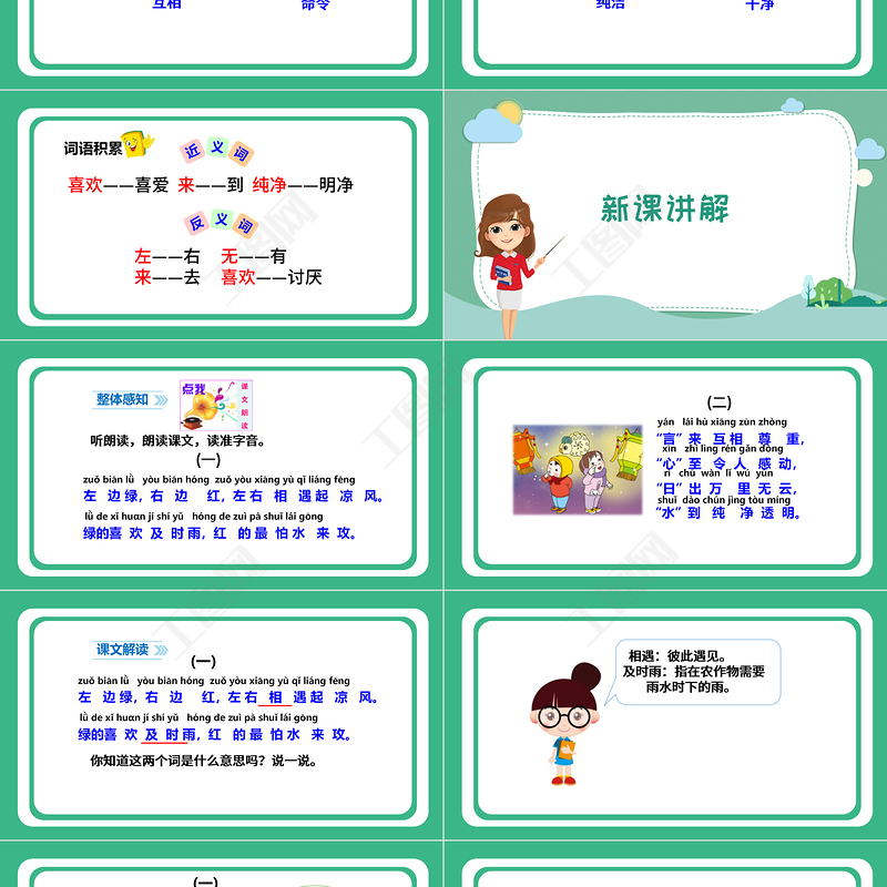 人教版一年級(jí)語(yǔ)文下冊(cè)說(shuō)課PPT課件識(shí)字4 猜字謎卡通小清新語(yǔ)文課件