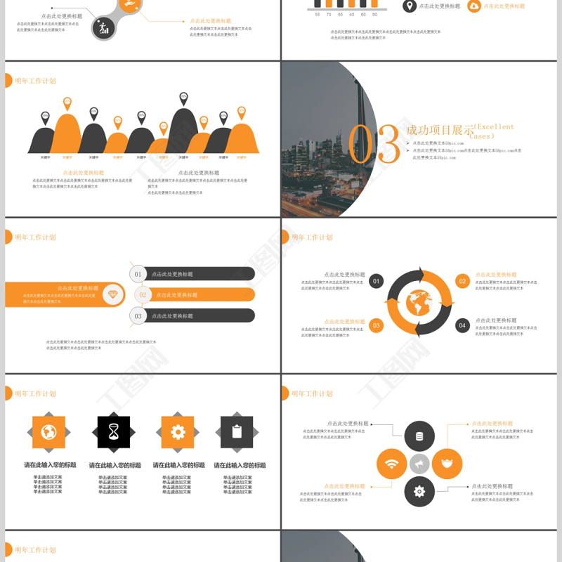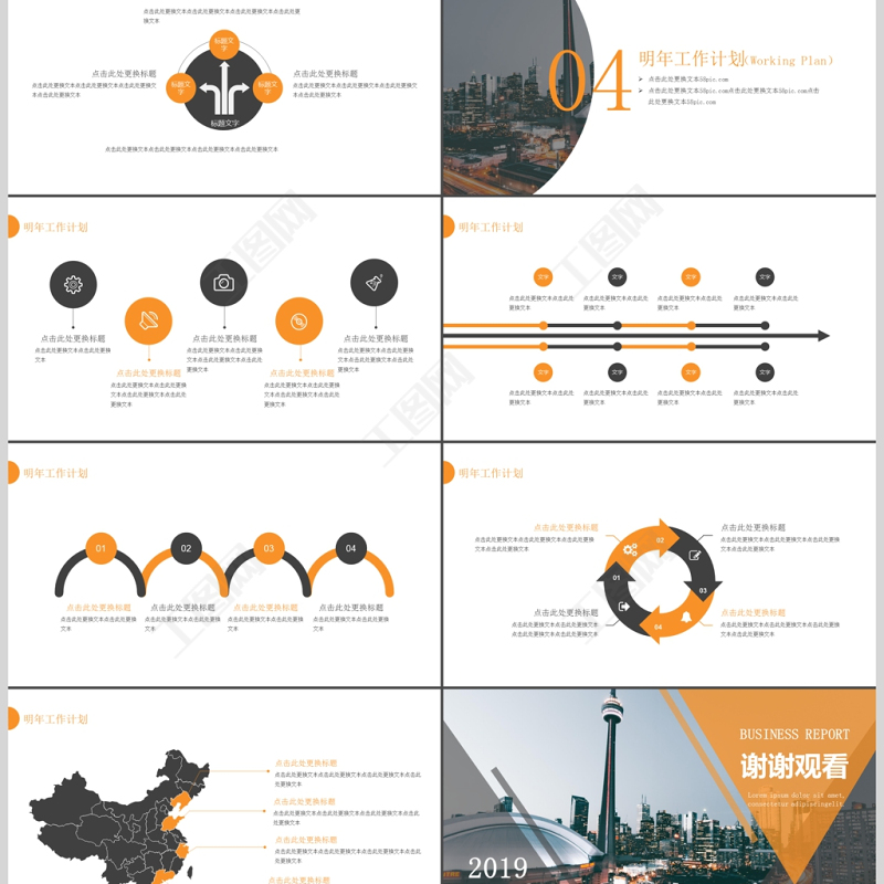 2019橙黑色歐美工作匯報(bào)PPT模板 Array