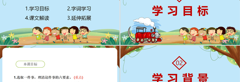 1.選取一件事,理清這件事的六要素。 (重點) 2.掌握正確的有條理的敘述事件過程的方法。 (重點) 3.運用人物描寫的方法,生動地表現(xiàn)人物形象。(難點) 本課目標(biāo)