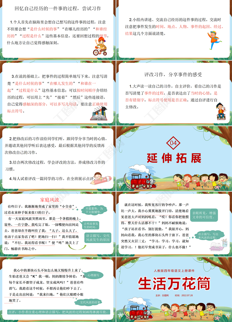工圖網(wǎng)提供2022生活萬花筒PPT習(xí)作小學(xué)四年級語文上冊部編人教版教學(xué)課件供會員免費下載。更多精彩黨課PPT素材,盡在工圖網(wǎng)。